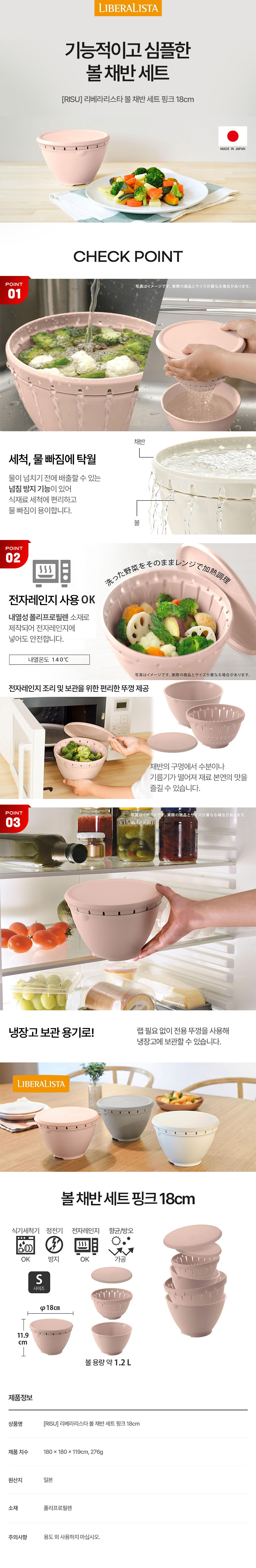 [RISU] 리베라리스타 볼 채반 세트 (전자레인지 사용가능) 핑크 18cm
