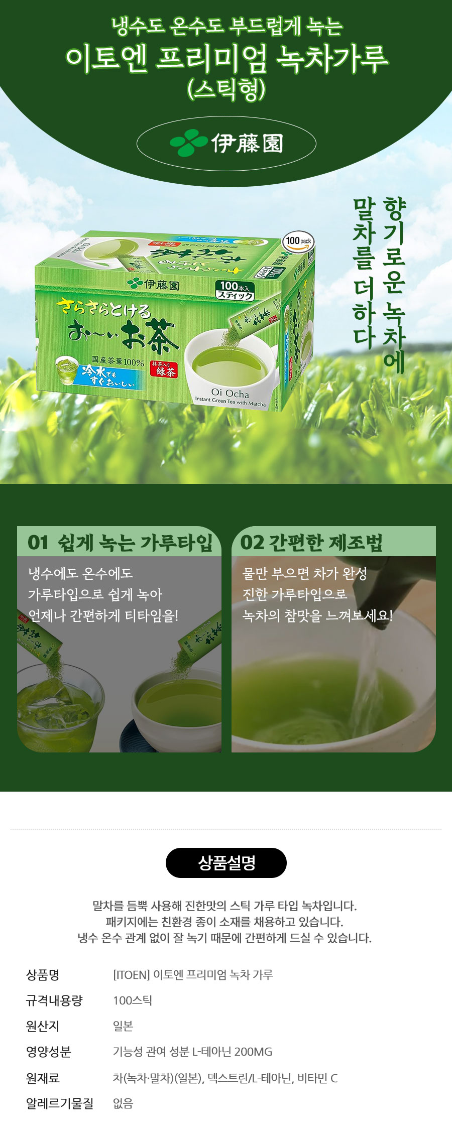 ★특가★이토엔 프리미엄 녹차 가루 100스틱