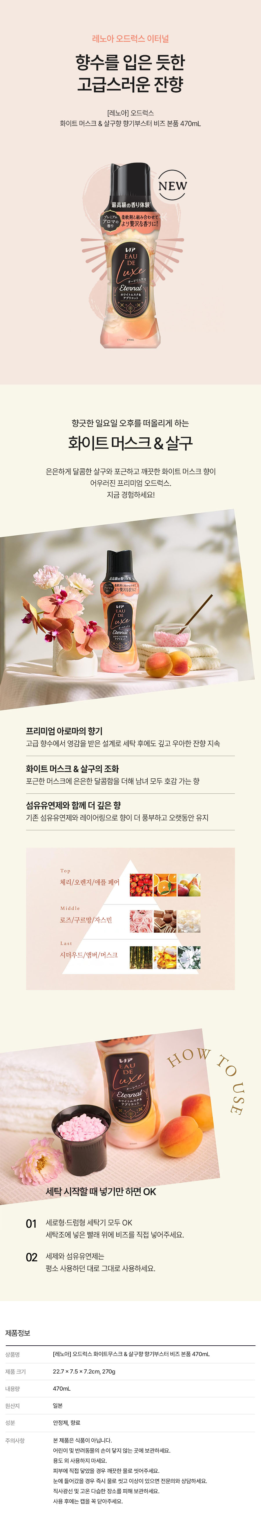 [레노아] 오드럭스 화이트무스크 & 살구향 향기부스터 비즈 본품 470ml
