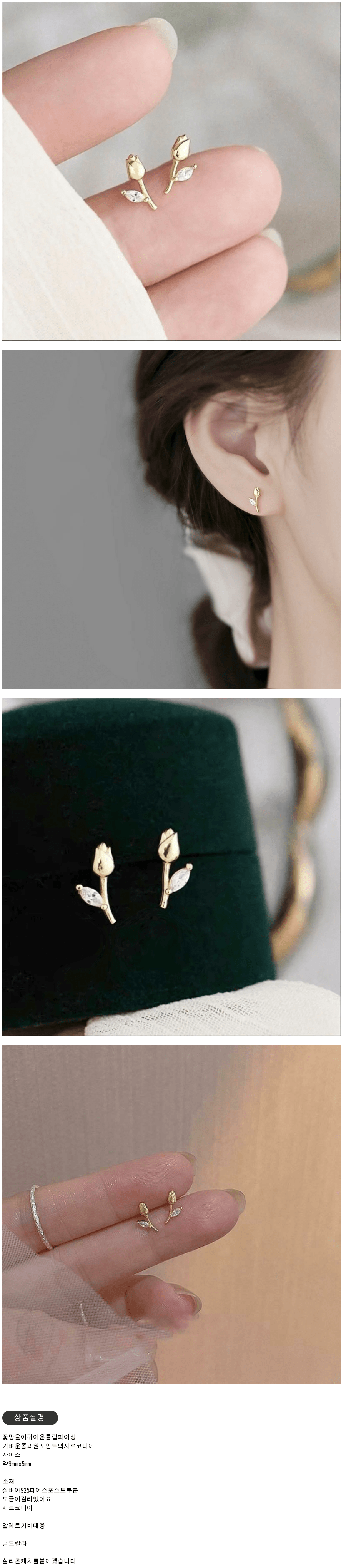 피어싱 튤립이 작은 심플 피어싱 지르코니아 플라워 실버925 귀여운 꼬마 꽃극소 겹쳐