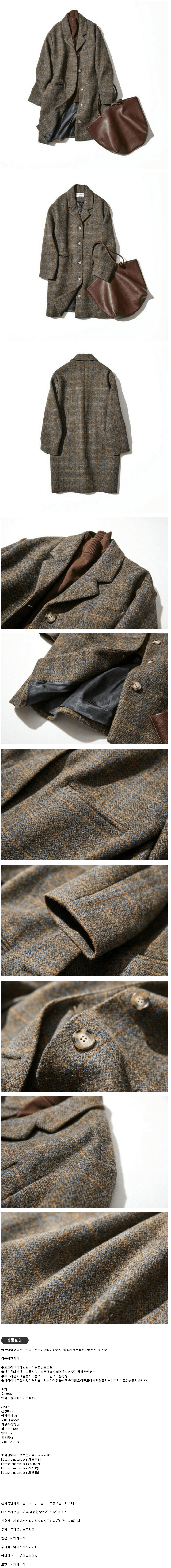 | 어른이 입고 싶은 멋진 양모코트 이탈리아산 양모100%체크무늬원단 롱코트1912057 |