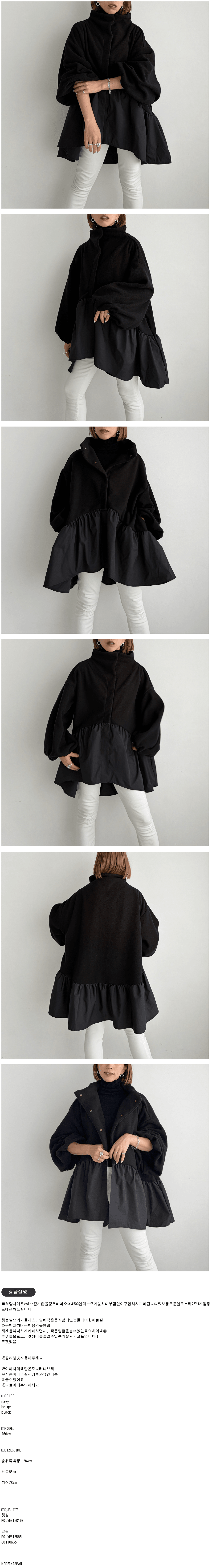,유루포와이소재퍼프슬리브코트black