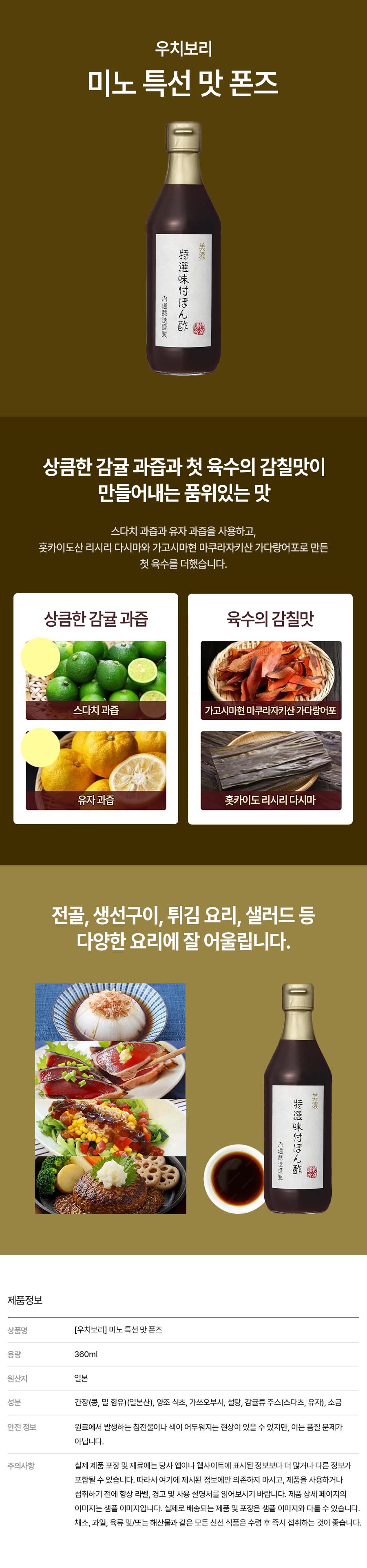 [우치보리] 미노 특선 맛 폰즈 360ml