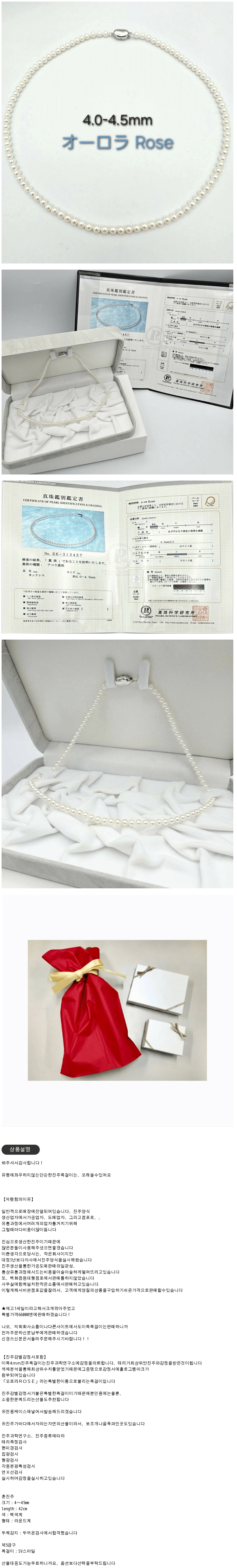 특별 가격!!아코나진주목걸이오로라로제4045mm