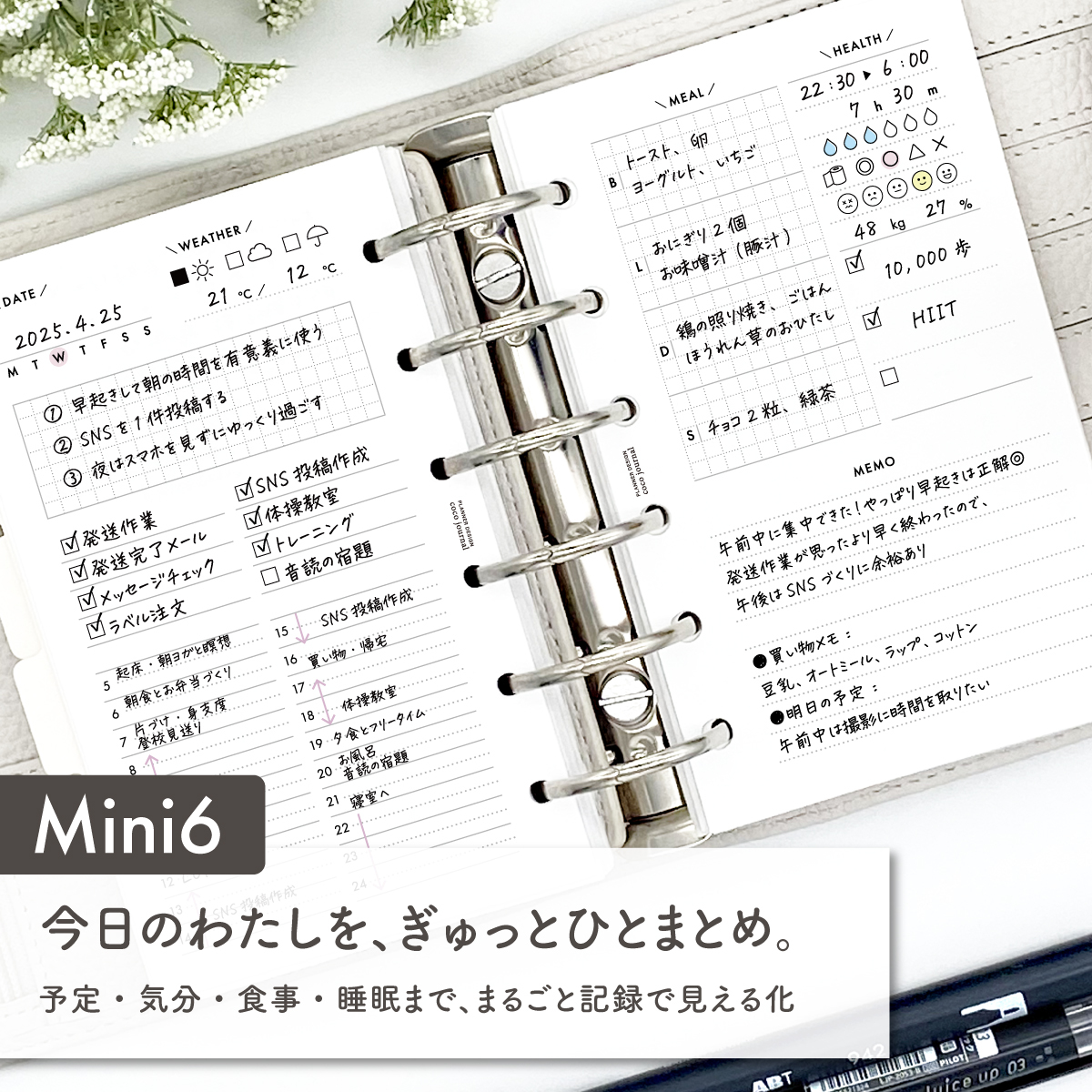 ,스케줄 관리, 건강 관리, 돌아볼 수 있는 데일리로그/시스템수첩리필《미니6사이즈》【CBMID..