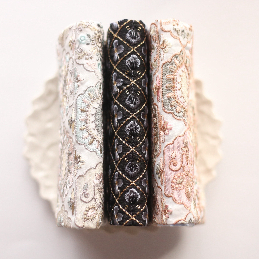 ,책꽂이에 진열하고 싶어지네요.、등 표지까지 아름다운 인도 자수 원단의 특별한 북커버〈봄..