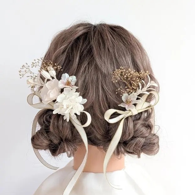 ,white×gold벚꽃벨로 아리본 머리 장식 드라이 플라워 헤어 액세서리 헤어 파츠 성인식 졸업식..