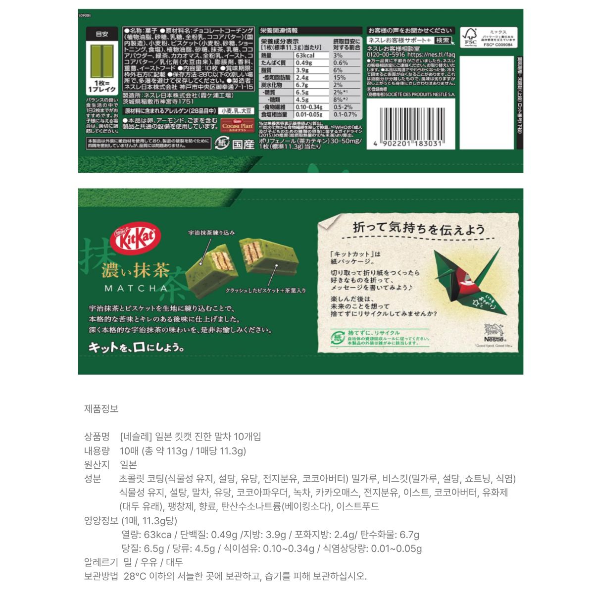 [네슬레] 일본 킷캣 진한 말차 10개입 x 12