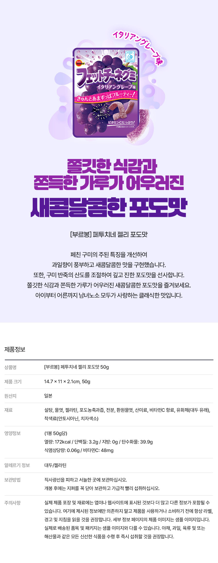 [부르봉] 페투치네 젤리 포도맛 50g x 10
